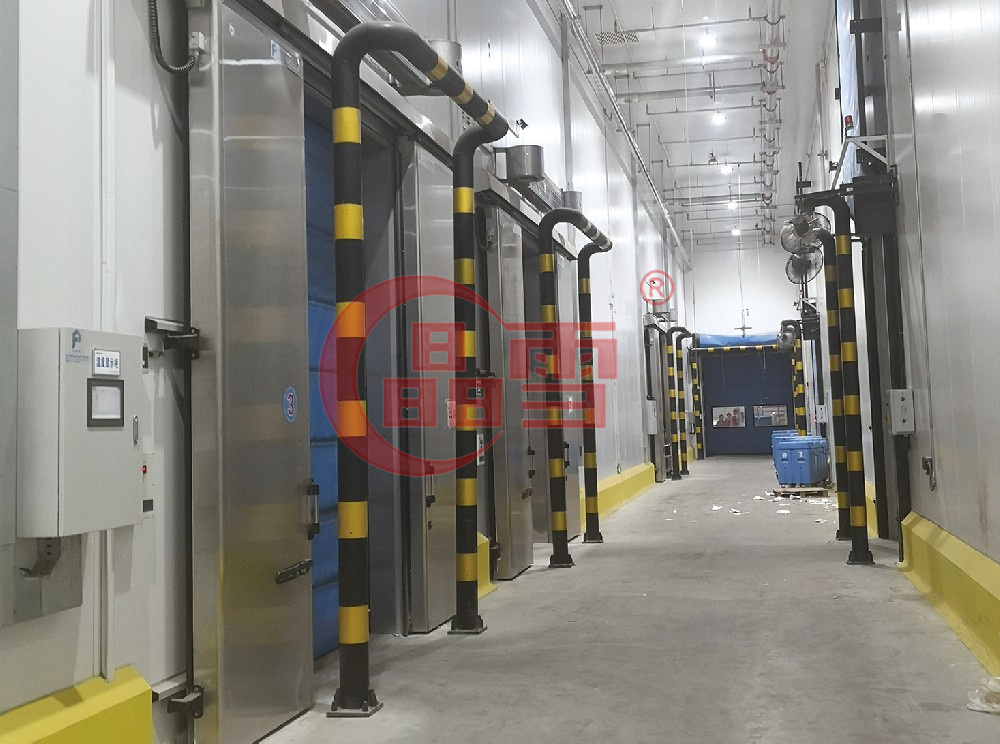 京東武漢新洲項目位于武漢陽邏經(jīng)濟(jì)開發(fā)區(qū),物流園占地面積超1200畝,其中二期鋼結(jié)構(gòu)常溫廠房改造冷庫,冷庫占地12000m2,分速度庫、變溫庫、低溫穿堂,冷庫采用晶雪連續(xù)生產(chǎn)線B1級PIR保溫夾芯板,庫板面積32000m2,冷庫門由晶雪提供,保溫施工工期4個月。
