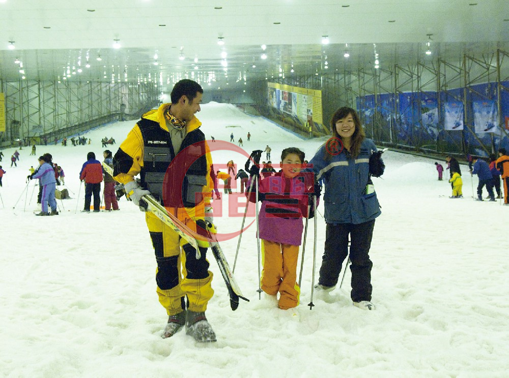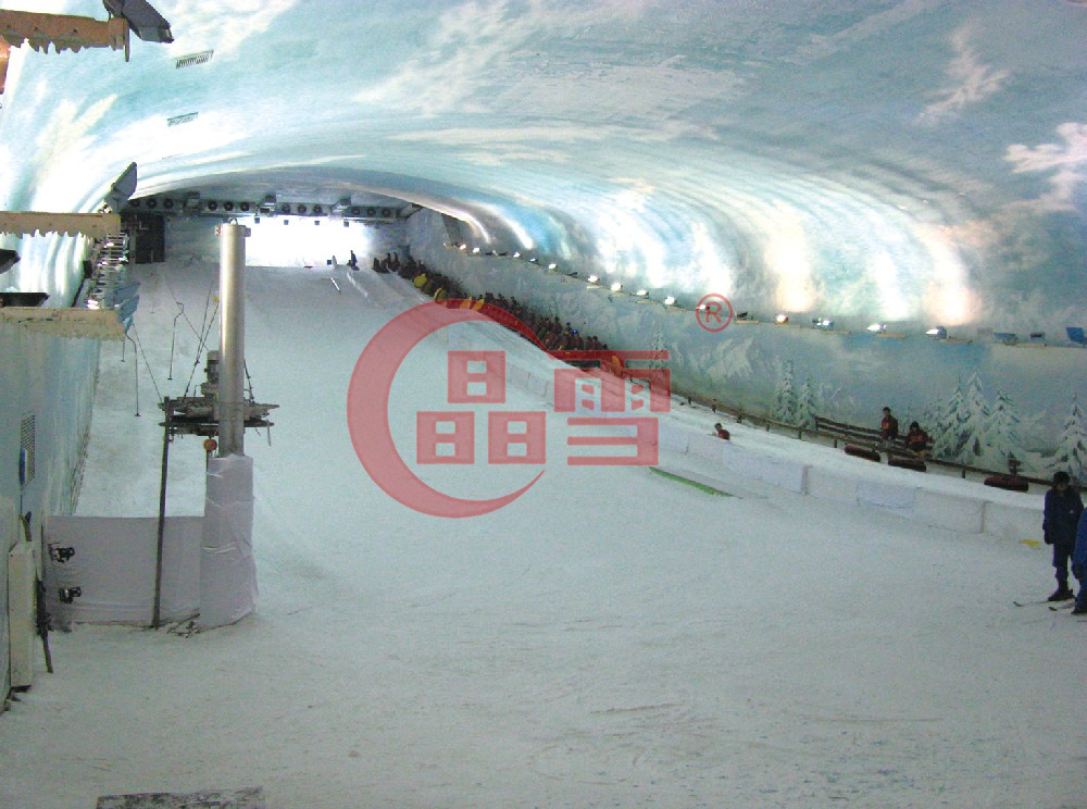 深圳世界之窗阿爾卑斯山室內(nèi)滑雪場,主體建筑面積4300m2,其中滑雪場面積3200m2,服務(wù)區(qū)面積800m2,設(shè)備區(qū)面積300m2。主滑道寬24m、長114m、高差12m;兒童滑道長20m、高差4.5m ; 2000年7月正式對外開放,是當(dāng)年國內(nèi)最大的室內(nèi)滑雪場。